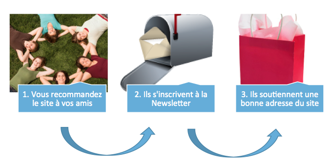 Vous aimez notre site ? Alors, parlez-en à vos amis ! Pensez à vos meilleurs bons plans ? Vous ne les avez probablement pas découverts à travers une publicité mais certainement une recommandation d’un(e) de vos ami(e)s. Nous avons donc mis au point un système pour que vous puissiez soutenir une bonne adresse qui est présente dans l’annuaire du Bottin de Famille et partager l’url du site avec vos amis.